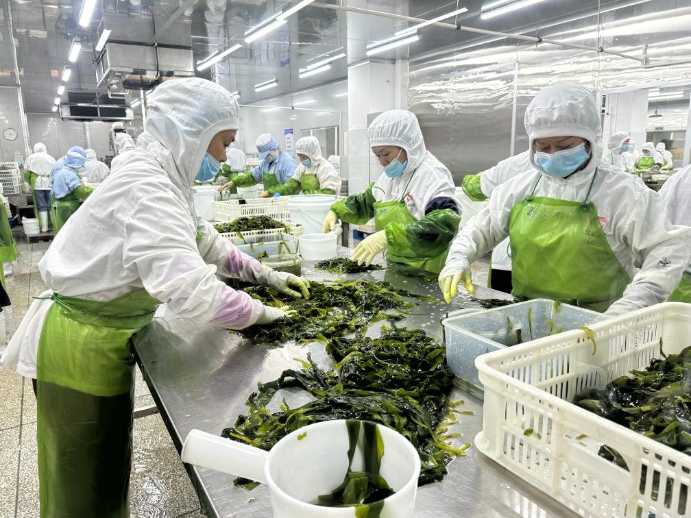 在福建省连江县的福建亿达食品有限公司,工人在分拣海带。新华社记者 庞梦霞 摄