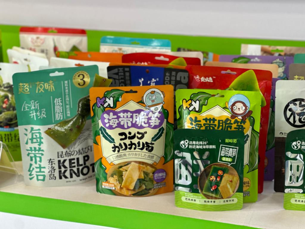 图为福建省连江县一家海带加工企业展厅里摆放的海带即食产品。 新华社记者 庞梦霞 摄