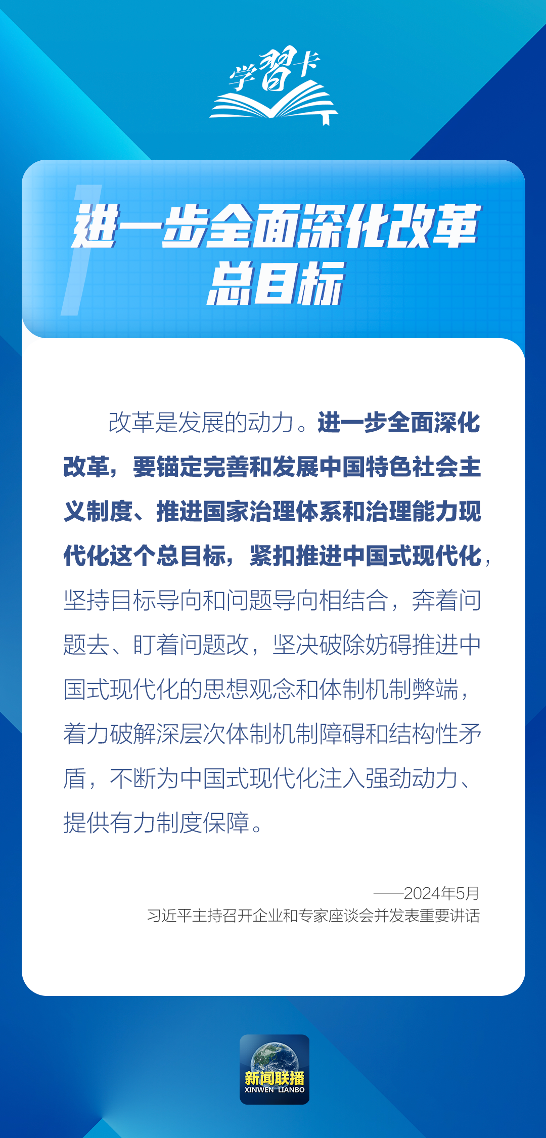 2024-07-01 15:52:27 来源:央视新闻客户端原标题:学习卡丨进一步全面深化改革,锚定这个总目标