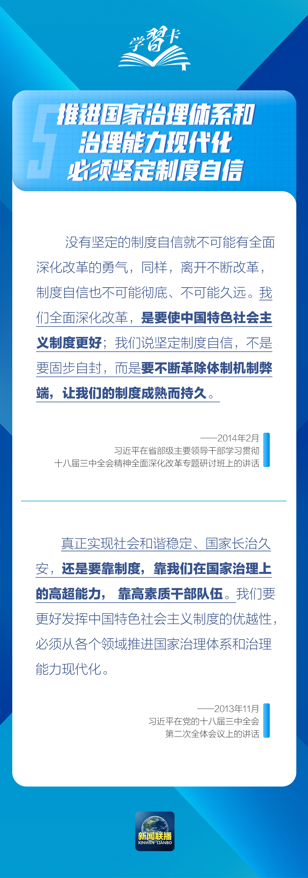 国家治理体系和治理能力现代化,是一个国家现代化的重要标志。新时代全面深化改革开放,就要使中国特色社会主义制度更加成熟更加定型,推进国家治理体系和治理能力现代化。