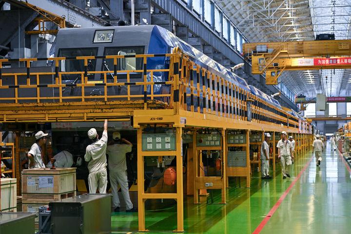 2024年7月26日,中车株机公司工作人员在总成车间组装大功率电力机车。新华社记者 李鑫 摄
