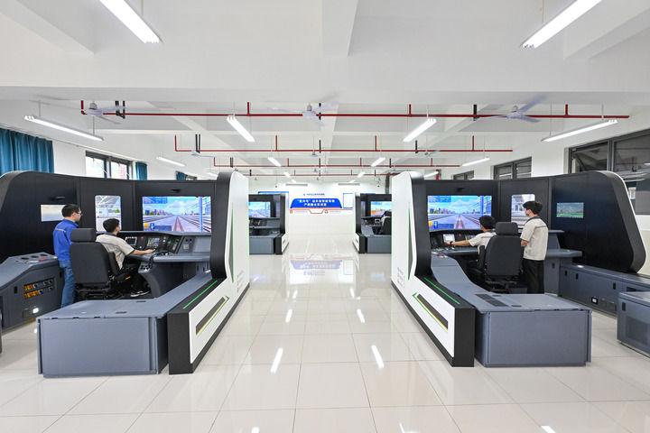 2024年7月26日,湖南铁道职业技术学院的学生在产教融合“复兴号”动车组智能驾驶实训室内学习动车驾驶。新华社记者 李鑫 摄