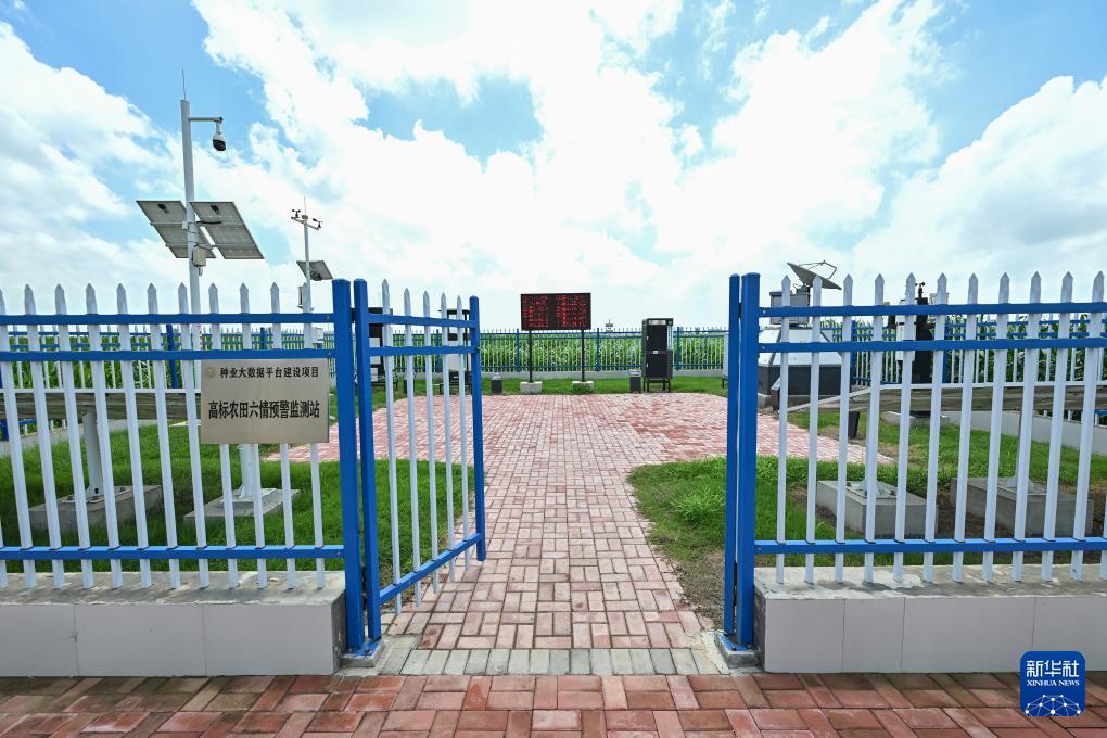 这是河南省新乡市平原示范区高标准农田里的六情预警监测站(7月29日摄)。监测站实时监测苗情、灾情、病情、虫情、墒情和肥情。新华社记者 李鑫 摄