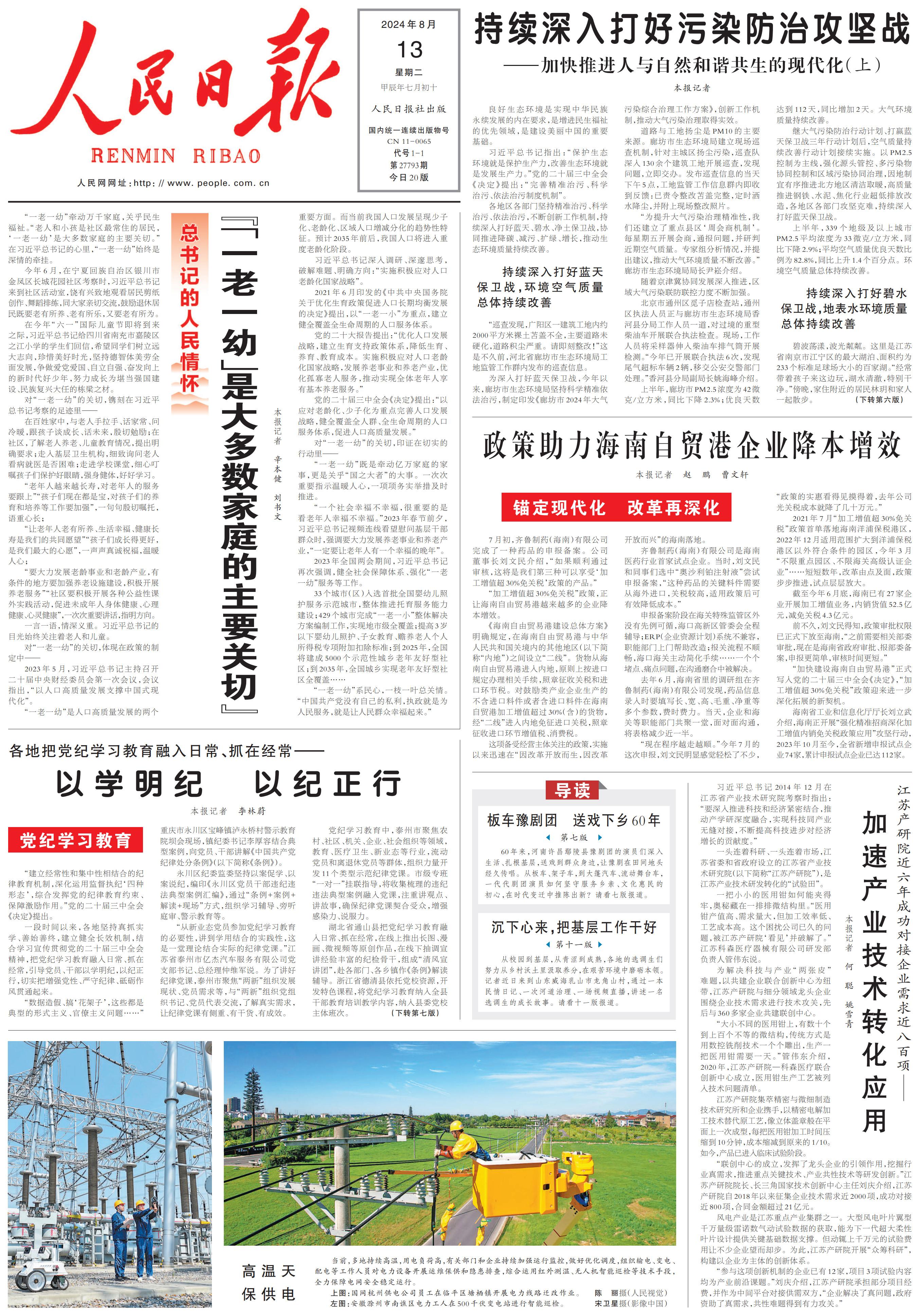 2024-08-13 22:18:05 来源:人民日报 作者:辛本健 刘书文原标题:总书记的人民情怀丨“‘一老一幼’是大多数家庭的主要关切”
