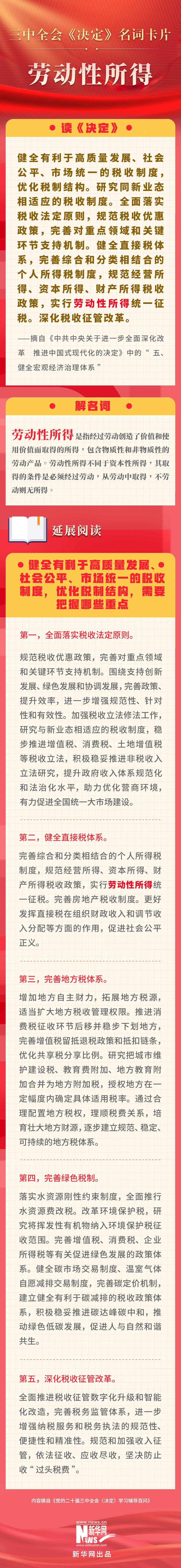 2024-08-21 17:07:13 来源:新华网原标题:三中全会《决定》名词卡片天天学:劳动性所得