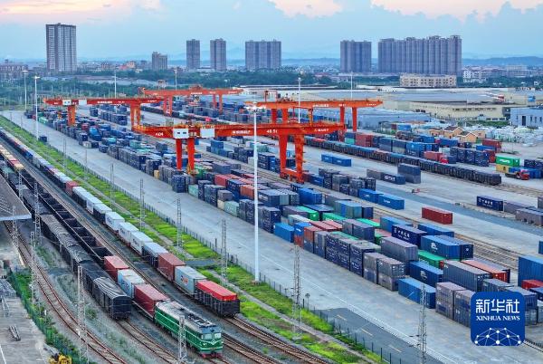 江西赣州国际陆港货场一片繁忙,随着一声悠长的汽笛声响起,满载家用电器、家具、机械设备等出口产品的中欧班列缓缓启动,前往俄罗斯莫斯科。