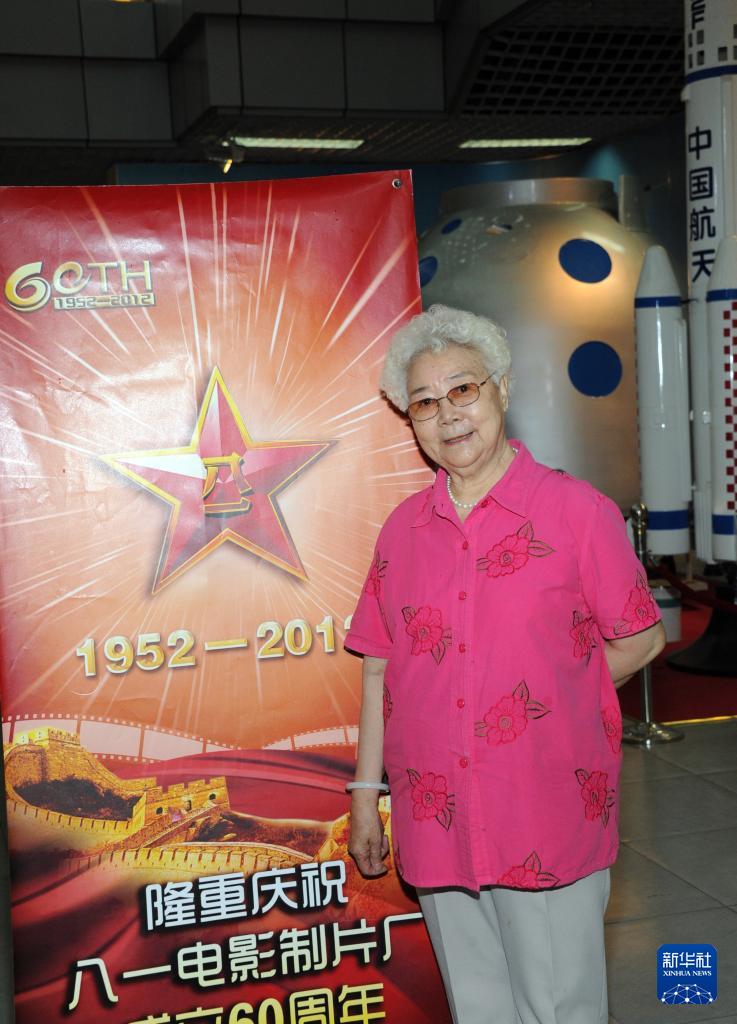 2012年8月1日,田华在八一电影制片厂“厂史馆”前留影。新华社发