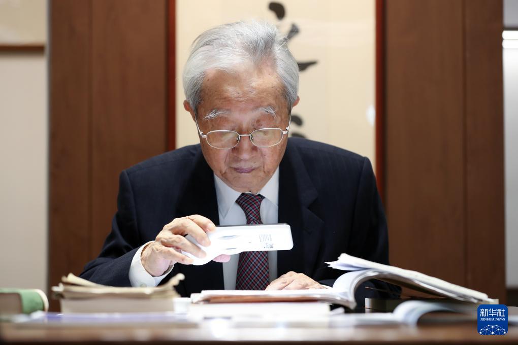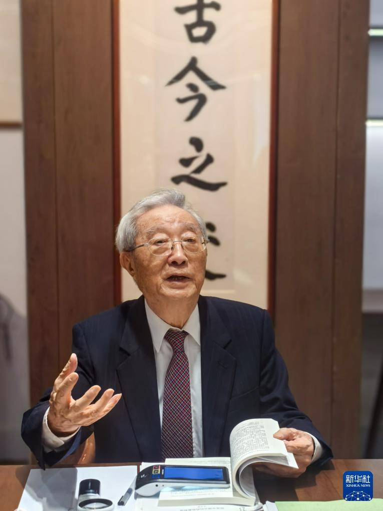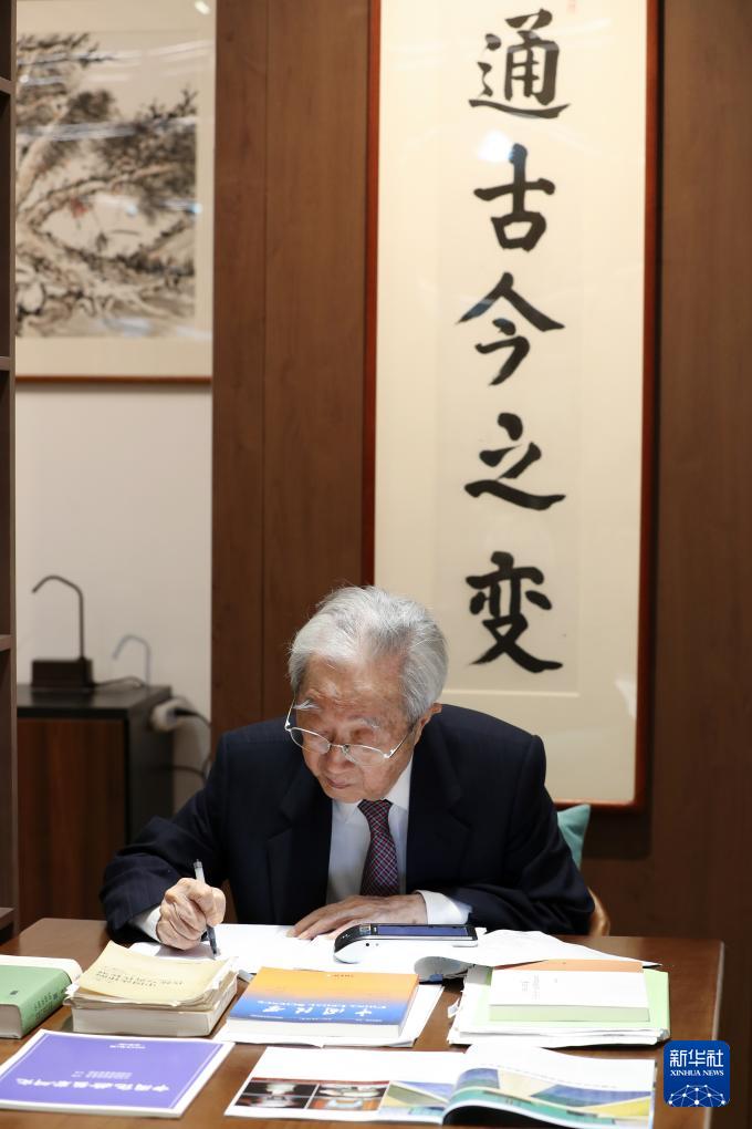 张晋藩教授在中国政法大学海淀校区图书馆蓟门法史书苑(2024年9月10日摄)。新华社发(卢云开 摄)