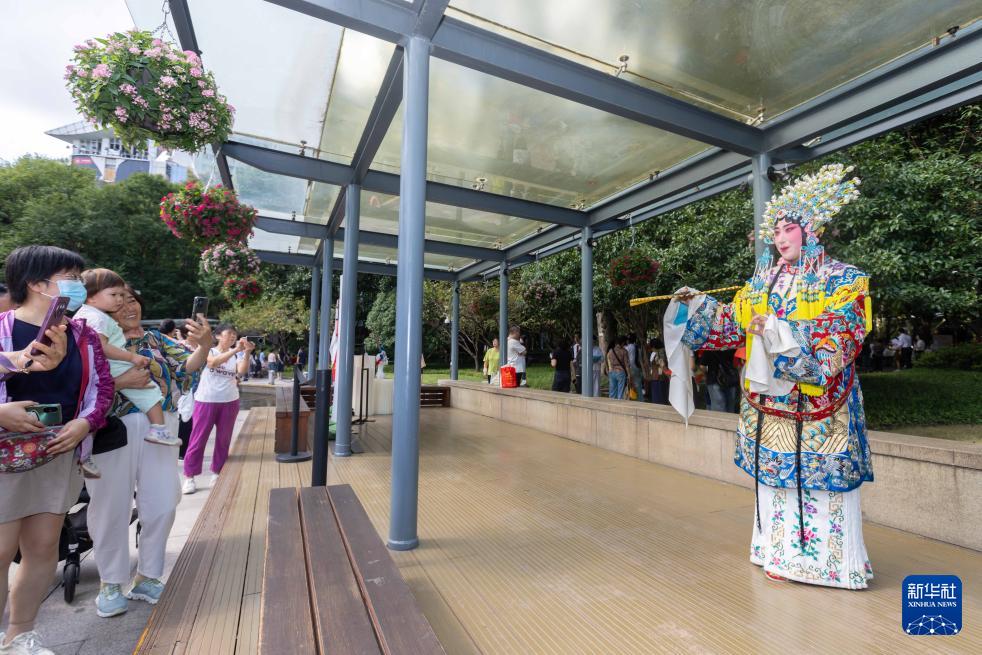 9月29日,上海市徐汇区庆祝中华人民共和国成立75周年游园会在徐家汇公园举办,人们观看戏曲表演。