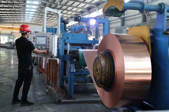 江西金拉铜箔有限公司车间工人在操作生产设备,这家公司2024年获评国家级专精特新“小巨人”企业(2024年9月14日摄)。新华社发(邓浩亭 摄)