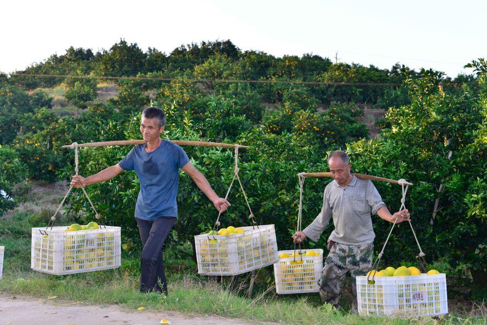 江西省瑞金市黄柏乡坳背岗脐橙基地,果农在搬运新摘的脐橙(2023年11月1日摄)。新华社发(李华诚 摄)