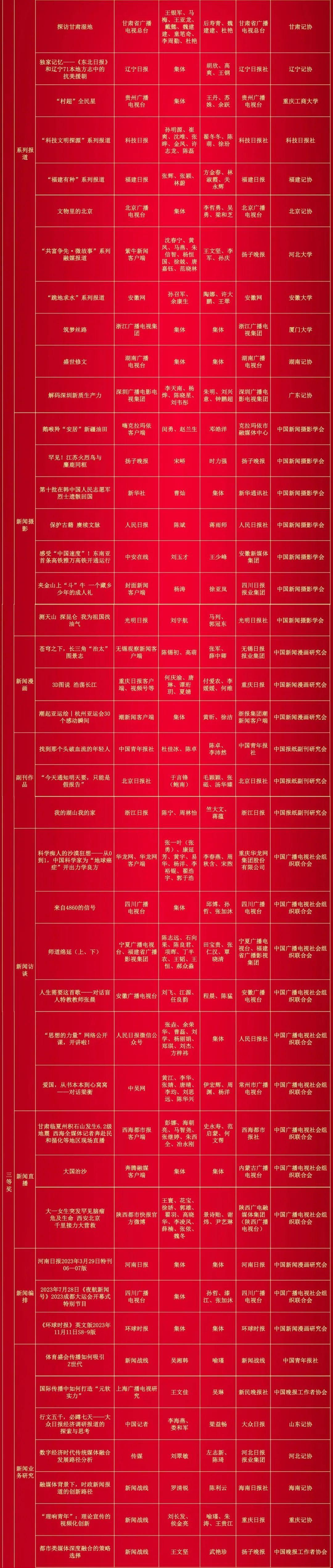 第34届中国新闻奖完整获奖名单