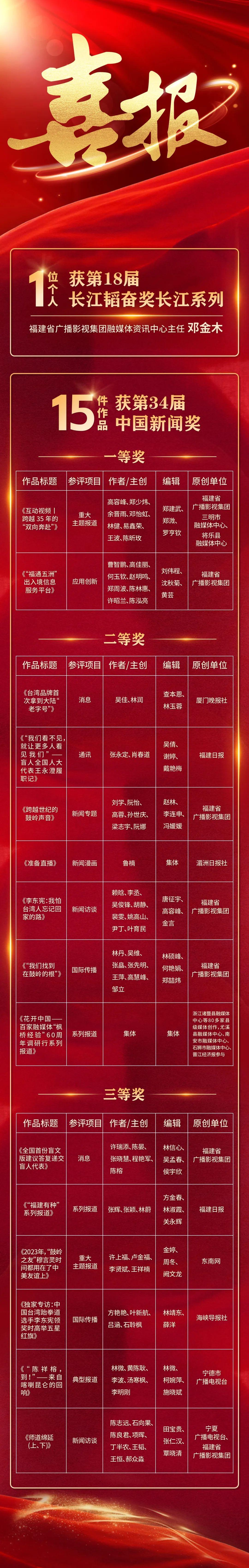 第34届中国新闻奖评选结果揭晓!福建获奖数创历史最好成绩