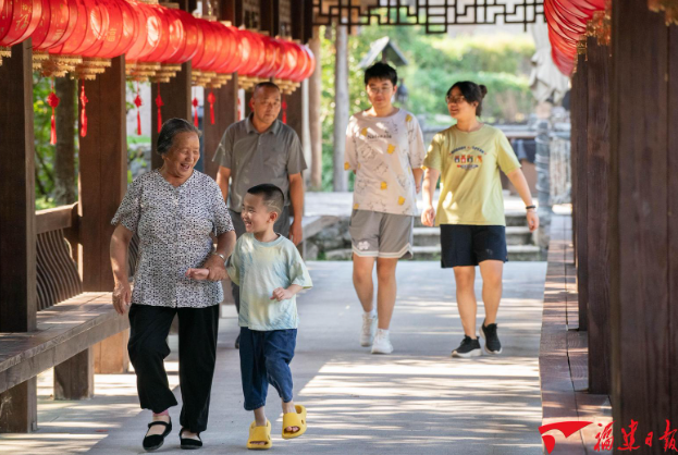 寿宁县下党乡,村民在长廊散步休闲。福建日报记者 王毅 摄