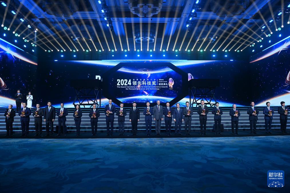 11月19日拍摄的2024年世界互联网大会领先科技奖颁奖典礼现场。当日,2024年世界互联网大会领先科技奖颁奖典礼在浙江乌镇举行。20个具有国际代表性的项目获奖,涵盖类脑计算、具身智能、6G、大数据、高性能芯片等前沿领域。新华社记者 黄宗治 摄