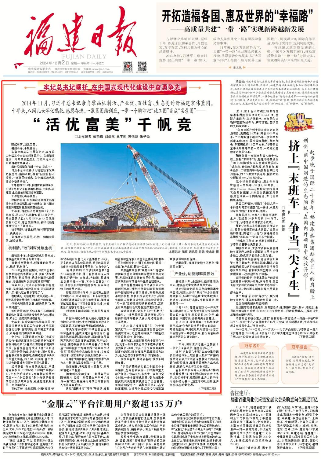 今天出版的《福建日报》,在头条重要位置刊发《“活优富美”千帆竞》述评文章,展现十年来福建全省上下牢记嘱托、勇毅前行,加快建设“机制活、产业优、百姓富、生态美”新福建的实干实绩,一起品读>>