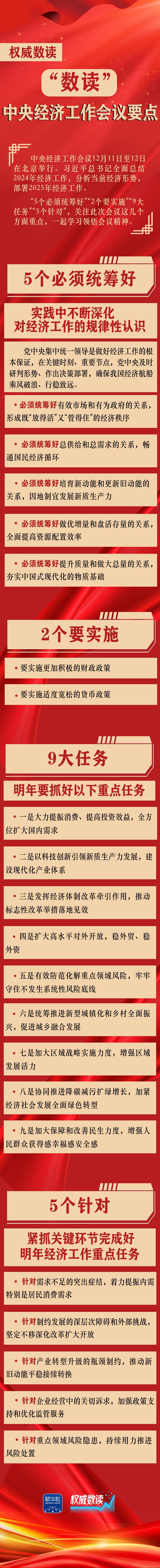 2024-12-14 09:17:42 来源:新华社原标题:权威数读|“数读”中央经济工作会议要点