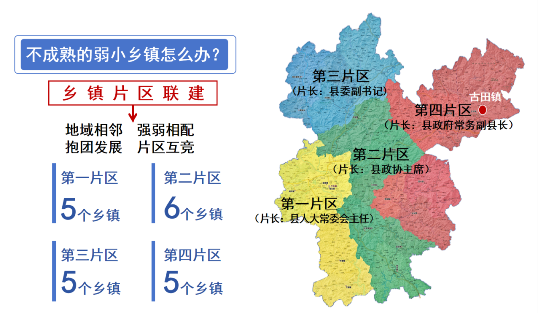 “撤并挂牌只是行政区划调整优化的第一步,我们更加注重做好撤并‘后半篇文章’。”古田镇党委书记梁尚荣说。