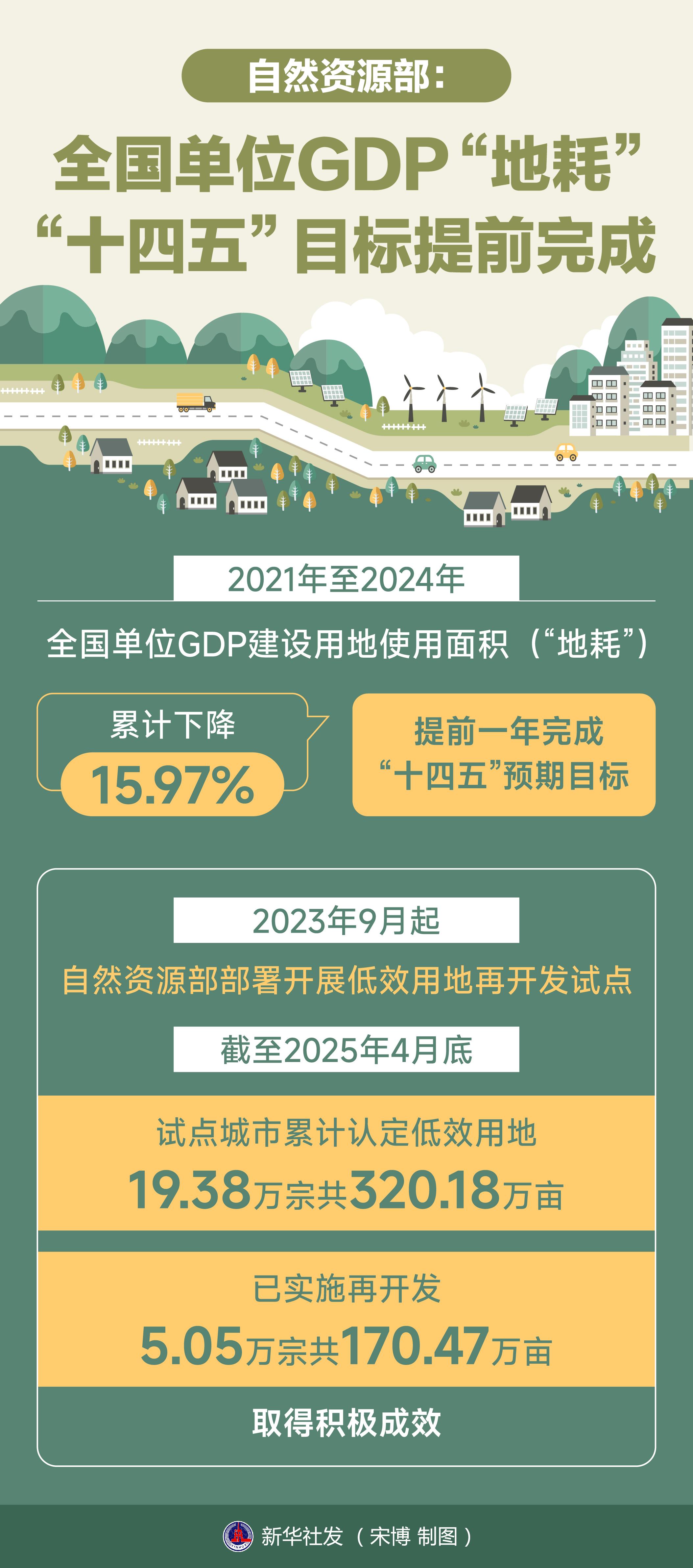 2025-06-26 10:06:54 来源:新华网原标题:自然资源部:全国单位GDP“地耗”“十四五”目标提前完成
