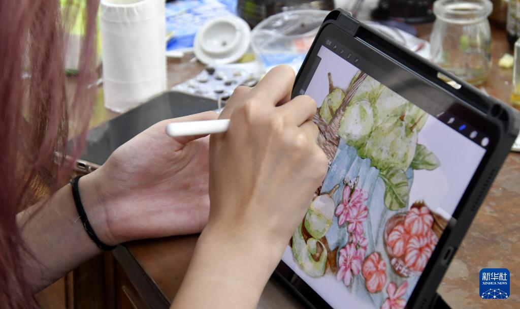 京彩瓷青年传承人在进行创作(6月18日摄)。