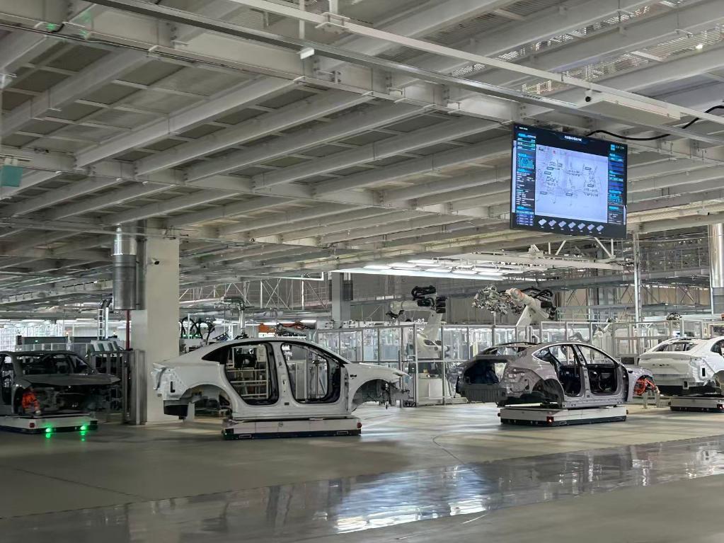 合肥市新桥智能电动汽车产业园蔚来第二工厂内拍摄的新能源汽车生产线。新华社记者吴慧珺 摄