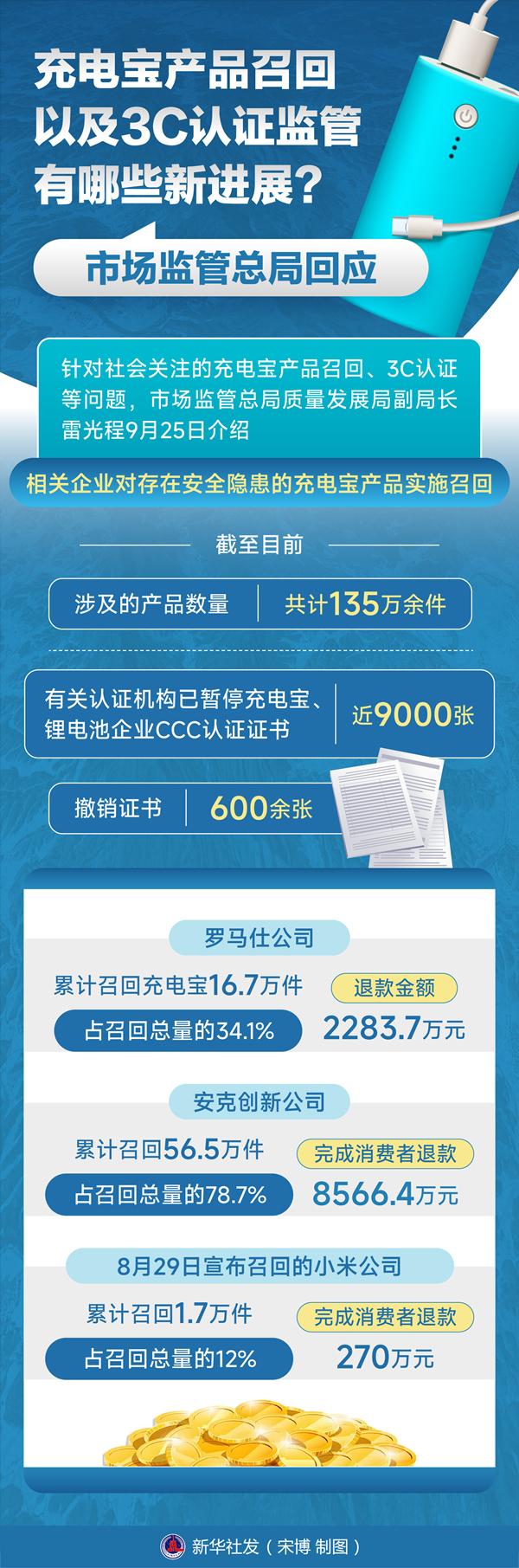 2025-09-26 10:12:20 来源:新华网新华社北京9月25日电 题:充电宝产品召回以及3C认证监管有哪些新进展?市场监管总局回应