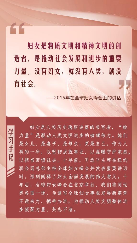在全球妇女峰会即将举行之际,我们重温习近平总书记的重要论述,共同展望妇女发展的美好未来,期待全球妇女事业发展谱写新的绚烂篇章。