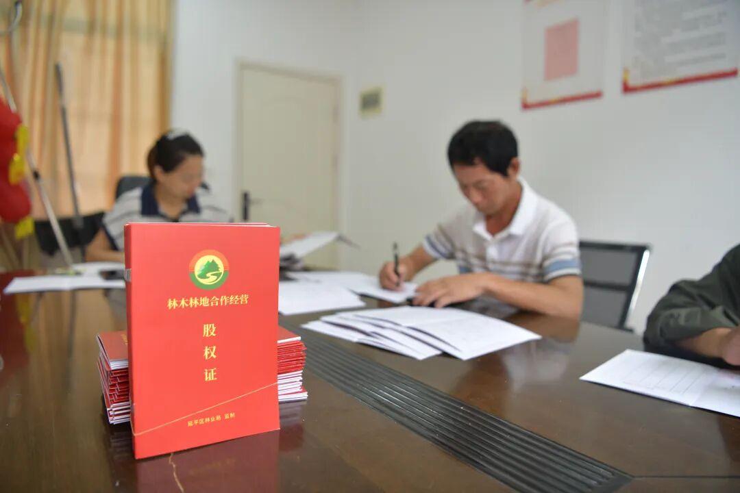 延平区巨口乡谷园村两委干部正在为签约的村民填写股权证