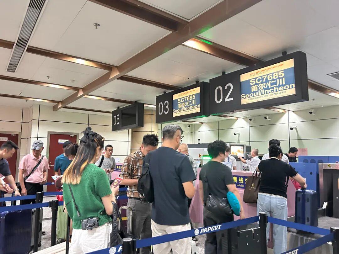 前往韩国的旅客正在武夷山机场办理乘机手续(张筱惜 摄)