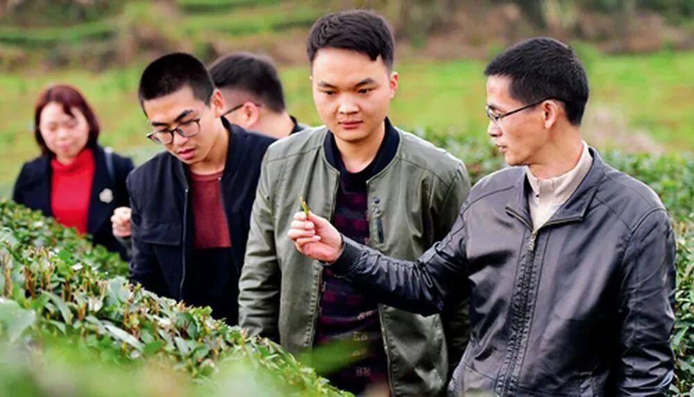 武夷山市星村镇,科技特派员刘国英(前)给学生们讲解茶叶知识。资料图(魏培全 摄)