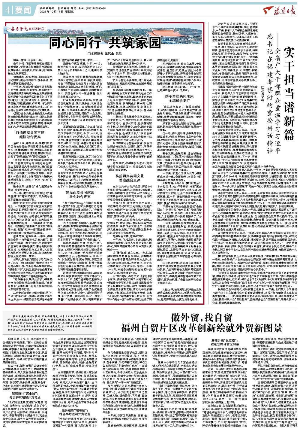 2025-10-17 09:42:52 来源:福建日报 作者:王凤山 吴洪原标题:奋勇争先系列述评⑨|同心同行 共筑家园