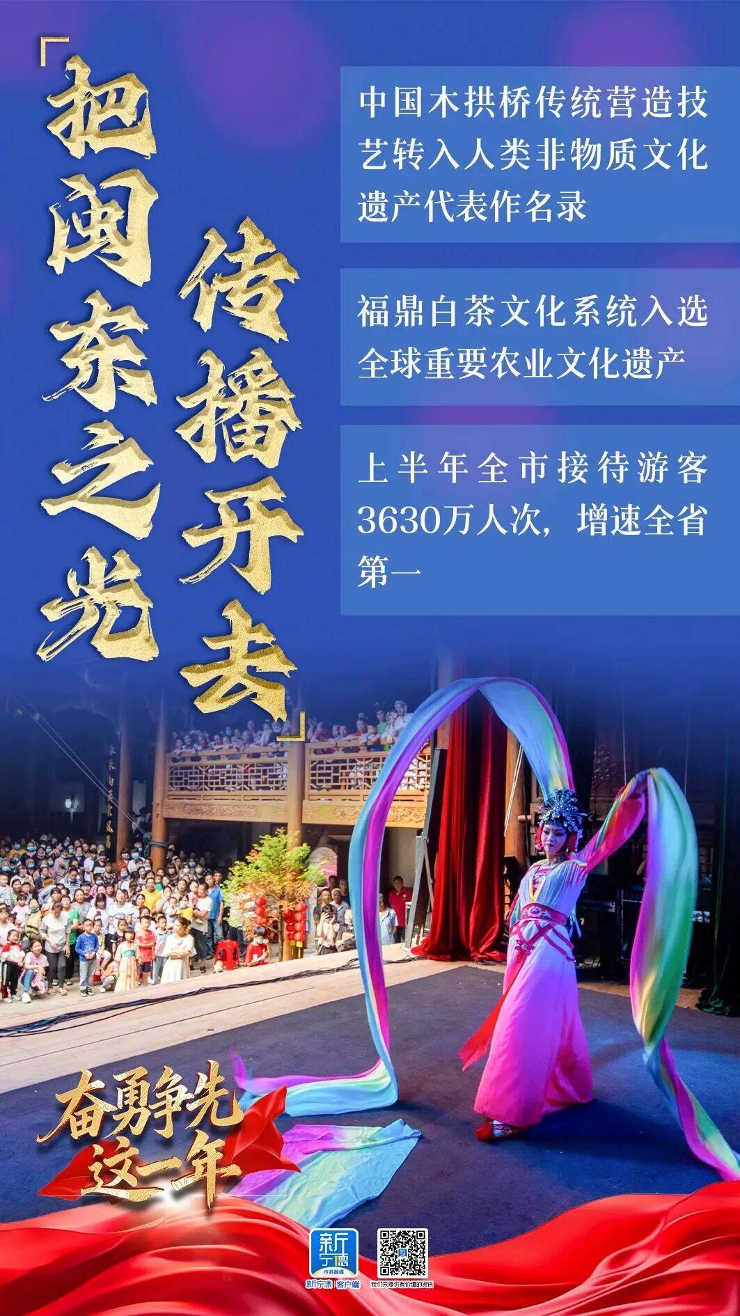 中国木拱桥传统营造技艺转入人类非物质文化遗产代表作名录,福鼎白茶文化系统入选全球重要农业文化遗产,屏南县探索传统村落保护利用工作经验入选《习近平文化思想实践案例选编》,霞浦县黄瓜山遗址成为全市首个省级考古遗址公园;