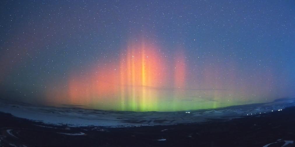 地磁暴的“副产物”之一便是极光。极光在夜空中形态多变,有时像飘逸天际的云朵,有时像横空出世的彩虹。而我国境内观测到的极光多数像玫红色幕布,有时也会变成橙色、绿色的光柱,缓缓移动。