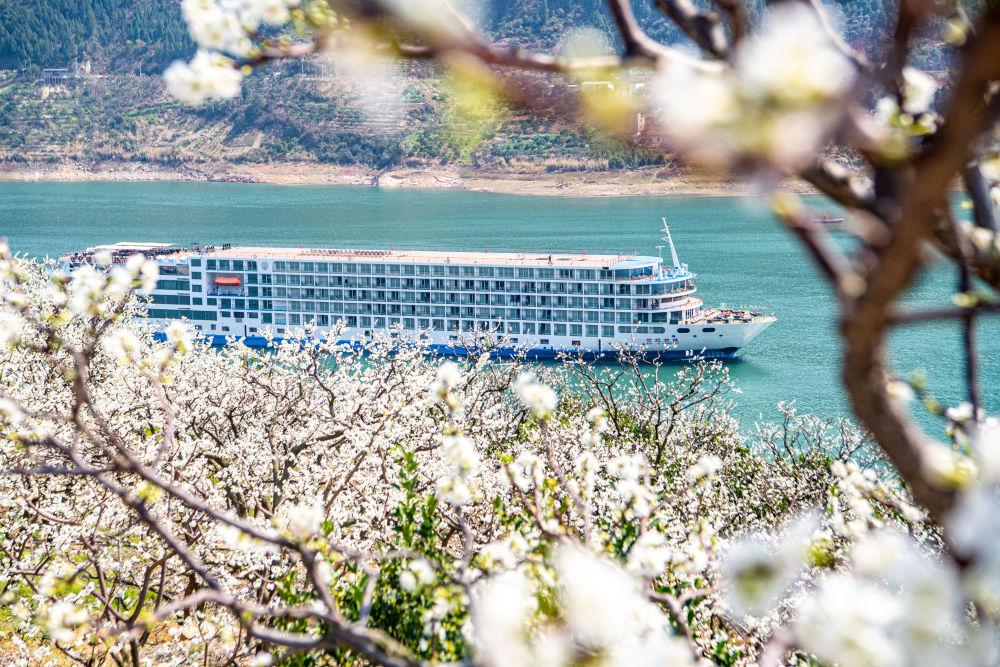 这是2025年3月21日拍摄的重庆市巫山县曲尺乡长江两岸的万亩李花。新华社记者 唐奕 摄