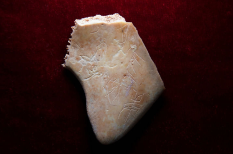 陕西宝鸡周原遗址出土的刻辞甲骨(2025年2月25日摄)。新华社记者 李一博 摄