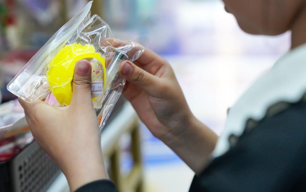 在山西省太原市一所学校周边,记者随机拿起一个外形夸张、颜色鲜艳的“小丑捏捏”,发现其手感黏腻,味道刺鼻。“有味道正常,稍微晾一下就好。”商店老板向记者介绍,“‘捏捏’很畅销,几乎每天都被孩子们一抢而空。”