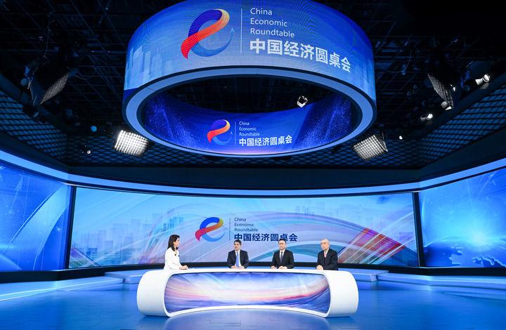 嘉宾在第二十六期“中国经济圆桌会”大型全媒体访谈节目录制现场交流发言。新华社记者陈晔华摄