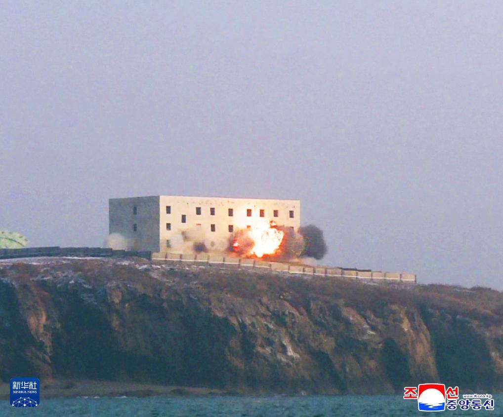 这张朝中社提供的照片显示的是导弹击中目标现场画面。新华社/朝中社