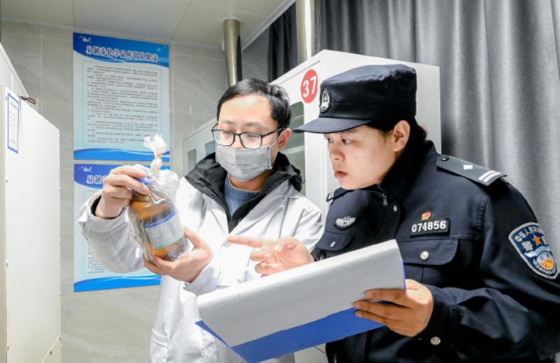 这是2025年12月9日,安徽马鞍山和县公安局民警在辖区企业对易制毒化学品库进行专项安全检查细致排查安全隐患,确保易制毒化学品全流程规范管控,严防流入非法渠道。