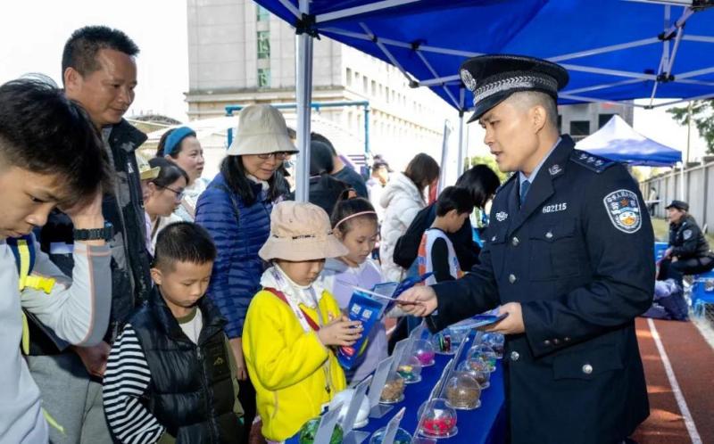 1月3日,广西北海公安局成功举办警营开放日活动,这是在“禁毒利剑”展示区,禁毒民警化身宣传员,利用陈列的仿真毒品模型向群众科普禁毒知识。
