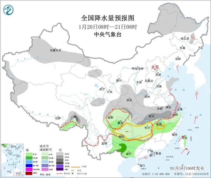 全国降水量预报图(1月20日08时-21日08时)图片来源:中央气象台网站