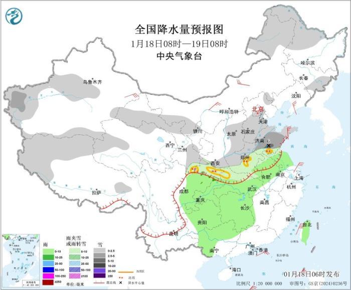 全国降水量预报图(1月18日08时-19日08时)图片来源:中央气象台网站