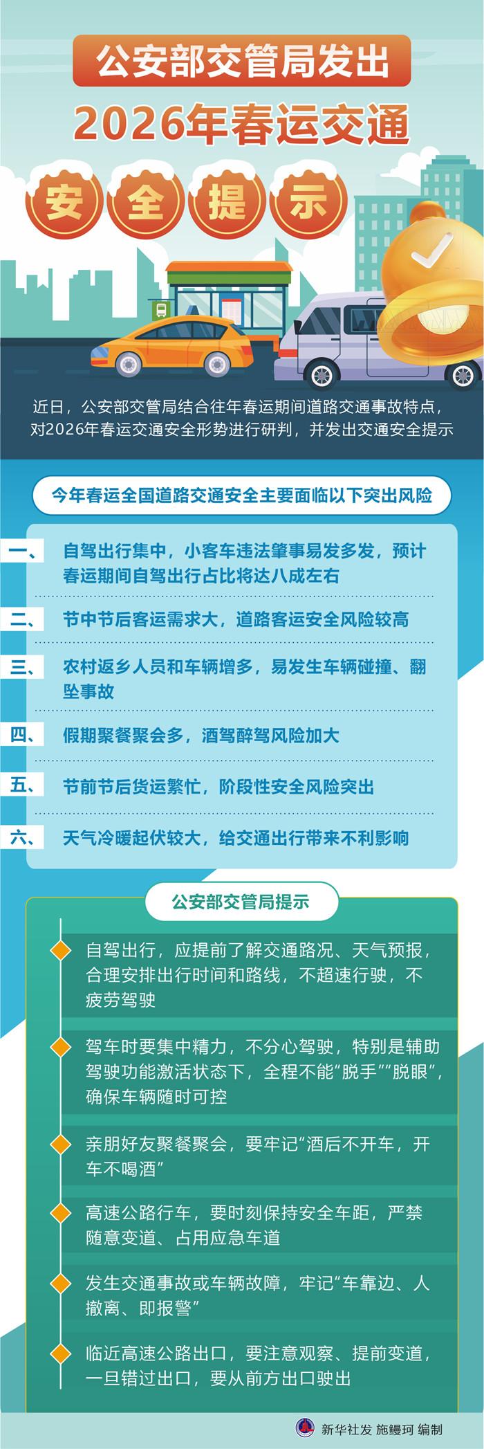 2026-01-31 09:20:38 来源:新华网原标题:公安部交管局发出2026年春运交通安全提示