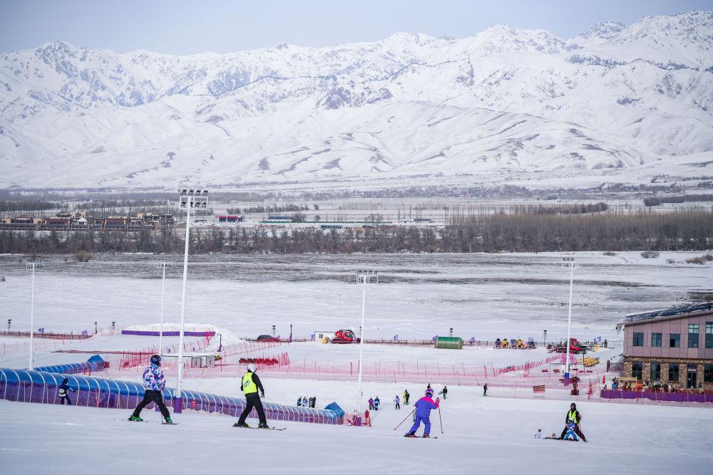 2026年1月25日,滑雪爱好者在新疆那拉提哈茵赛滑雪度假区滑雪。新华社记者徐宏岩摄