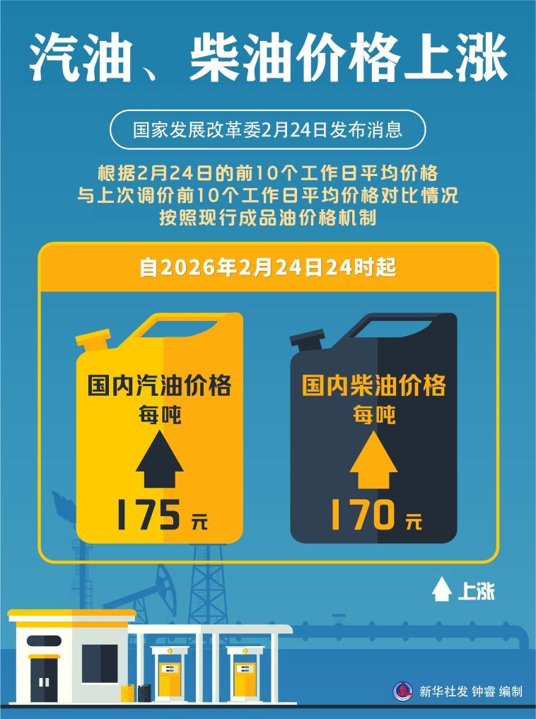 2026-02-25 09:27:25 来源:新华社原标题:汽油、柴油价格上涨