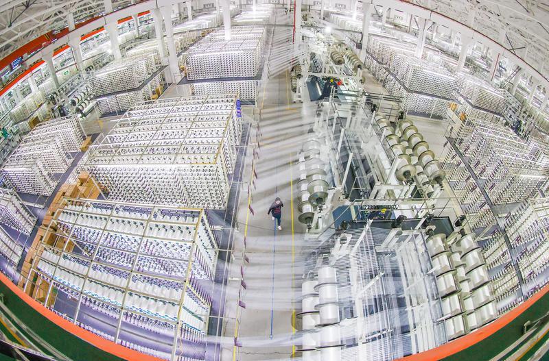 晋江信泰公司5G智慧工厂经编机车间。董严军 林锦鑫 摄