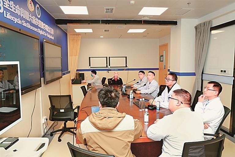 上海、三明两地医务人员在三明市第一医院全生命周期六病共管数字联合门诊为病人看诊。郑烨摄/光明图片