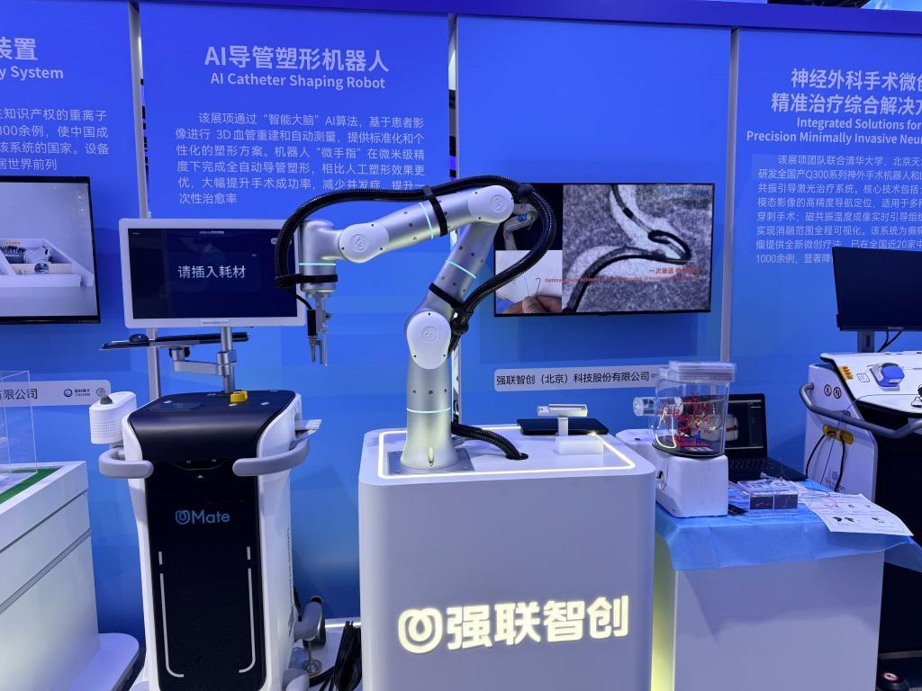 强联智创推出一款AI导管塑形机器人,可对患者血管进行自动测量和三维重建,通过算法分析,自动实现微米级精度的导管塑形。临床显示,与传统人工塑形相比,机器人导管一次性到位成功率提升45%,5分钟内到位成功率提升88%。