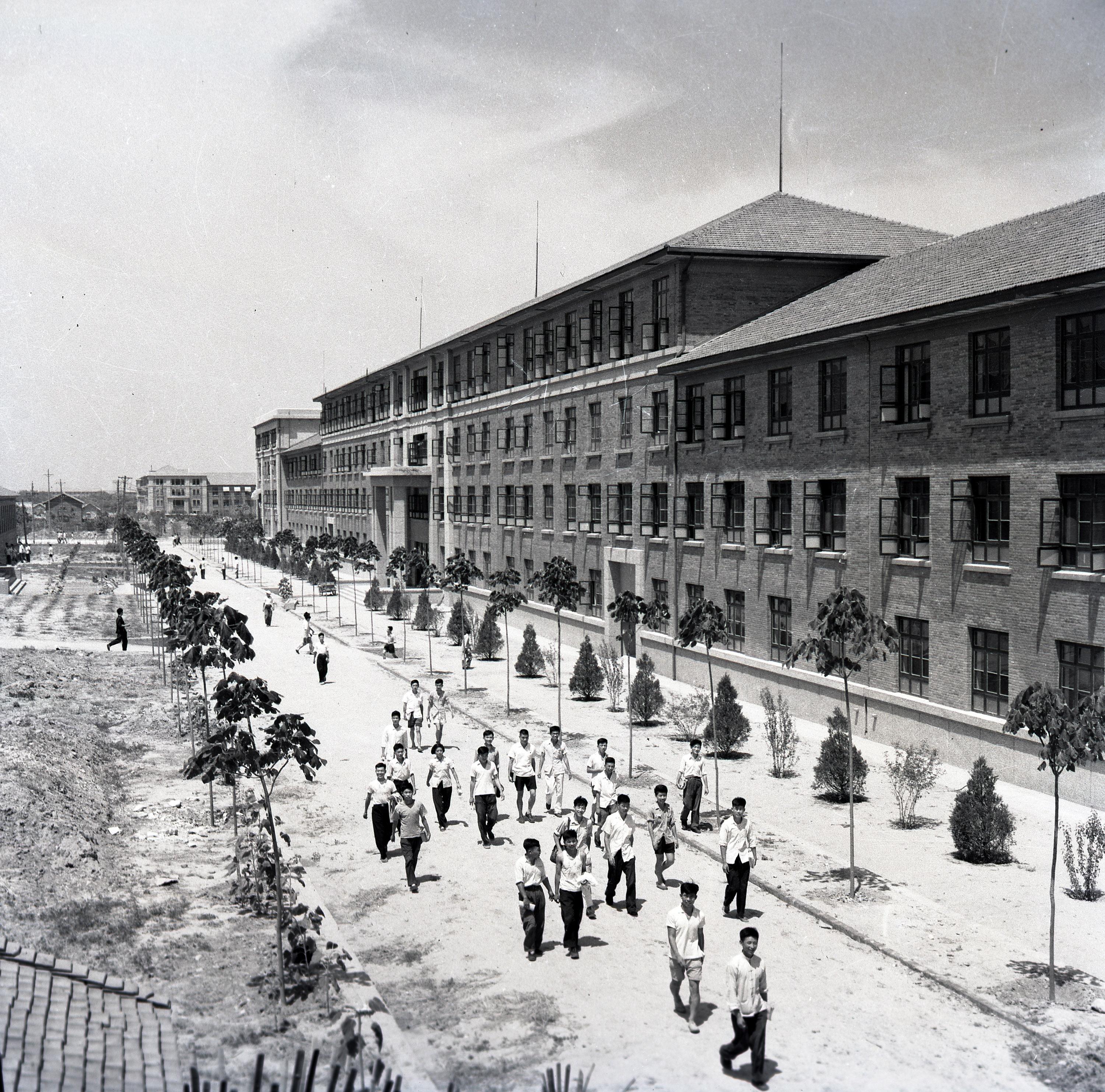 迁校之初,马路不平、电灯不明、电话不灵;用水紧张,洗脸水得到工地上去端;冬天,教室仅靠一个小炉子取暖……尽管如此,师生们却精神饱满,干劲十足。