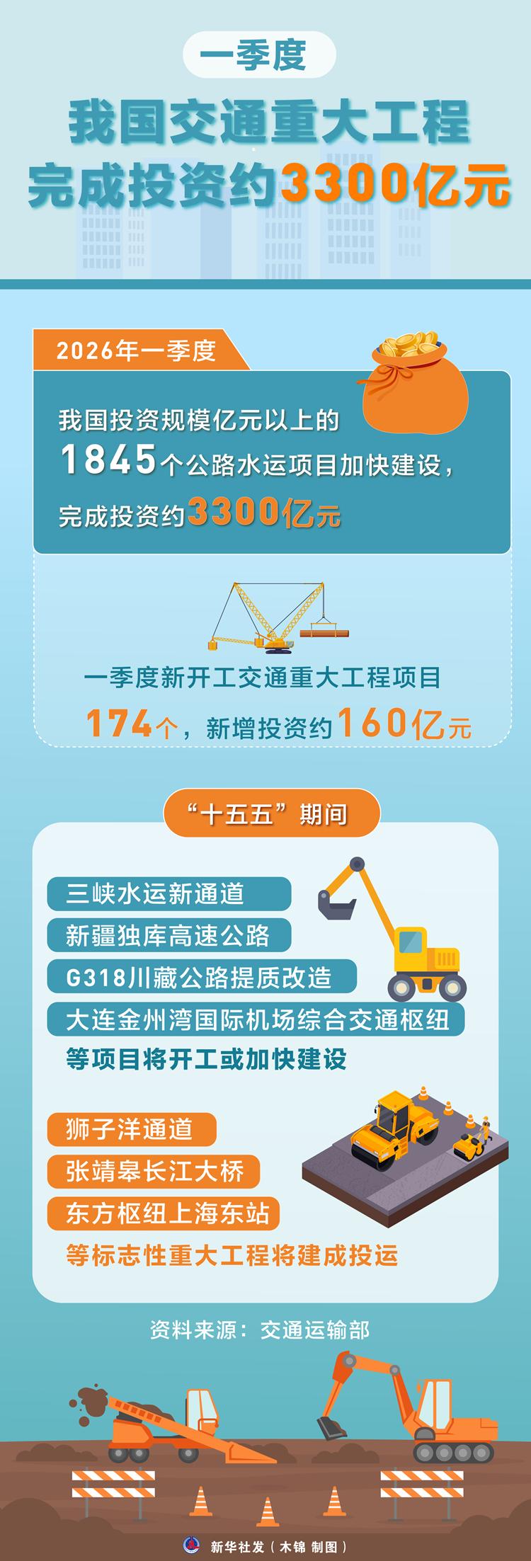 2026-04-29 09:09:05 来源:新华网原标题:一季度我国交通重大工程完成投资约3300亿元